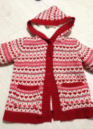 Тёплый кардиган на девочку в идеальном состоянии. На меху. 12-18 месяцев, будет дольше. Замеры по запросу