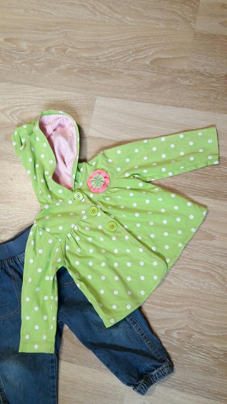 Яркая коттоновая кофточка в горошек. Размер производителя: 18 месяца. ПОГ 29 см плечо 22 см. длина рукава от плечевого шва 27 см. длина спинки 29 см Состав на бирке: 100% коттон.