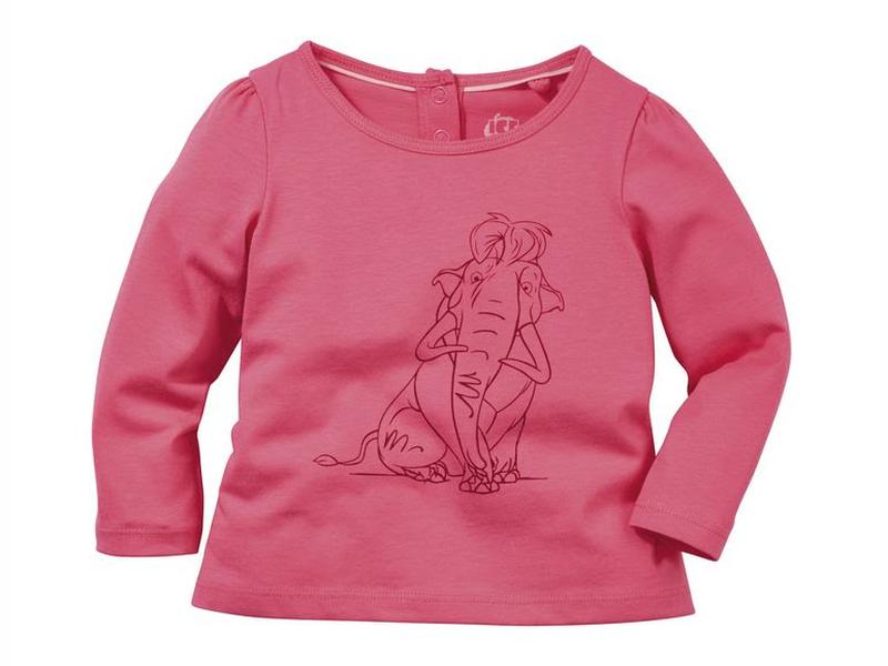 Стильный лонгслив для девочки от Ice Age, Baby collection из торгового дома Lidl. Детский лонгслив насыщенного розового цвета с принтом мамонта — персонажа из мультфильма "Ледниковый период" по всей поверхности. Мягкий, приятный на ощупь качественный трикотаж из 100% хлопка. Сзади удобная застежка на кнопочки. Изделие сертифицировано международной системой тестирования текстильной одежды - Oeko-Tex Standard 100. В наличии размер 86/92 на 12 - 24 месяца. Длина 37, ширина под руками 30, плечи 23, рукав 32. Цена 150 грн.