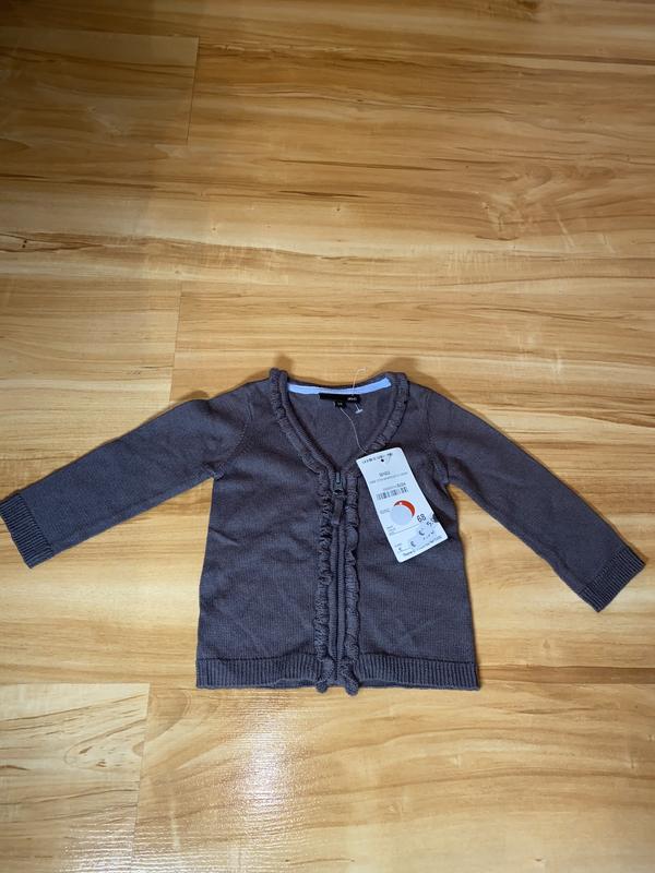 Кофточка для девочки на замочке украшена рюшей. Фирма jbc. На рост 68 см Довж. кофти 27 см, долж. рукава 25 см Плечи 18 см