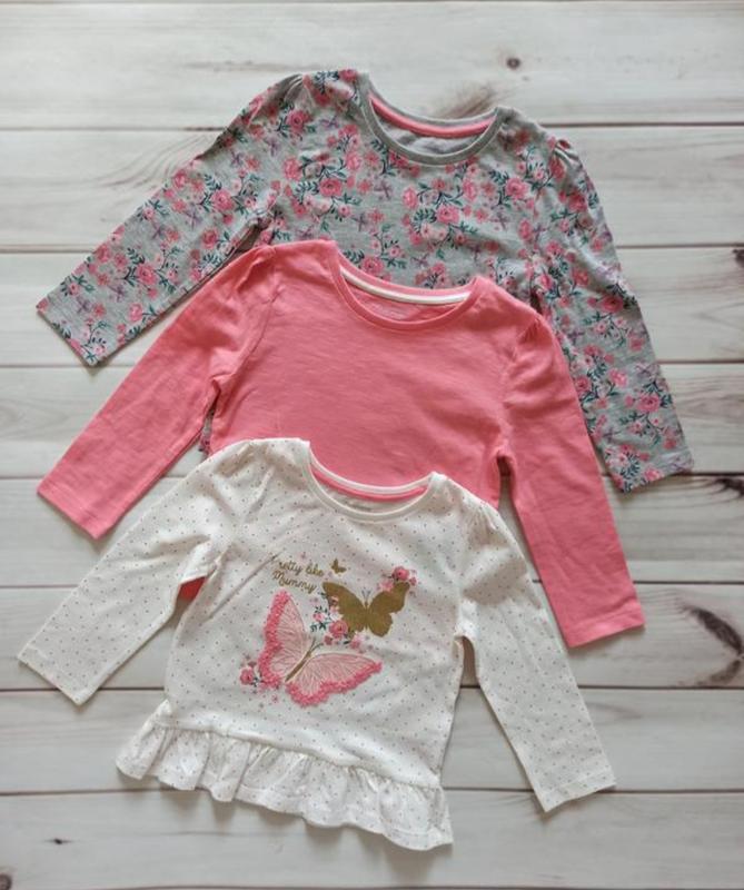 Лонгслив Primark комплект из 3 единиц. Размеры: 74: длина 30см, ширина 24,5см, плечи 19см, рукав 26см. 80: длина 33,5см, ширина 25,5 см, плечи 22см, рукав 27,5см Состав ткани: 100%котон Страна-производитель: Индия