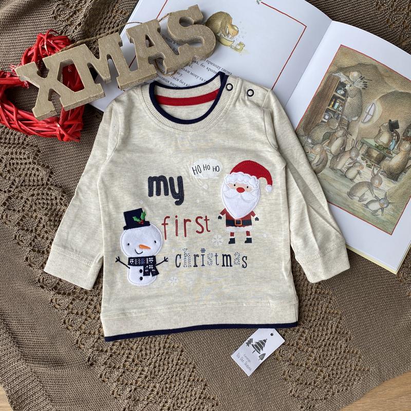 Новорічний реглан кофта на хлопчика 3-6 6-9 місяців може перше різдво my first christmas