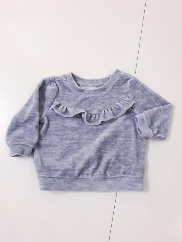 В идеальном состоянии бархатная кофточка на девочку 6-12мес.Кофточка очень мьягенькая и приятная на ощупь.Длина по спинке 28см,длина рукава от плеча 24см,ширина под мышками 28см.