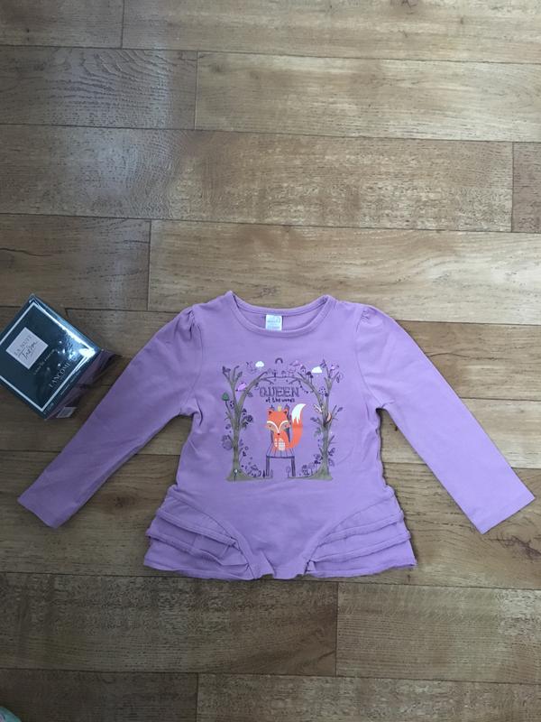 Трендовый лонгслив для девочки 1,5-2 годика брендовый miniclub лиса оборки хлопок
