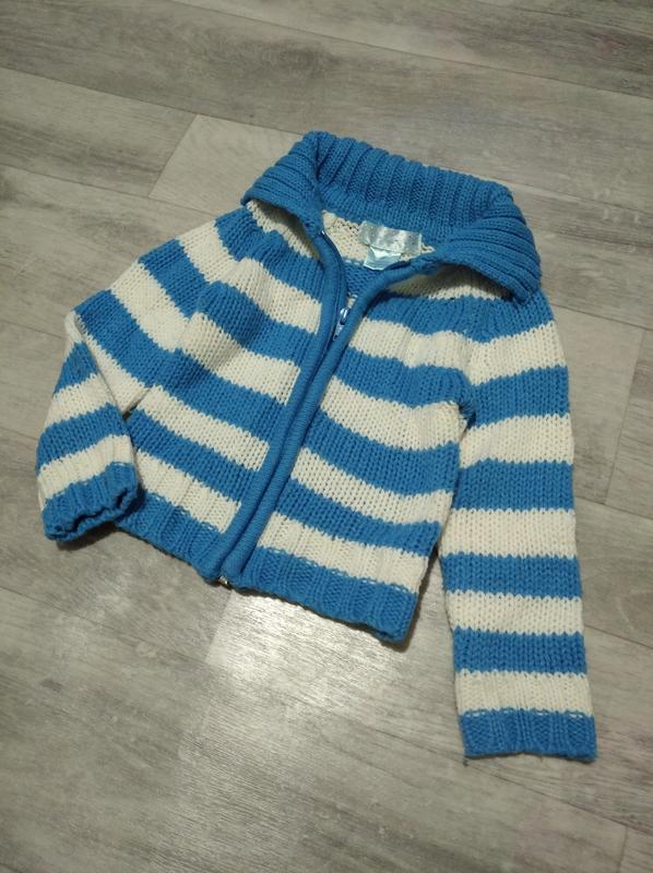 Кофта вязанная на мальчика. Замеры: рукав-реглан 35,5 см, ворот 10 см, пог 24 см, длина по спинке 30 см.