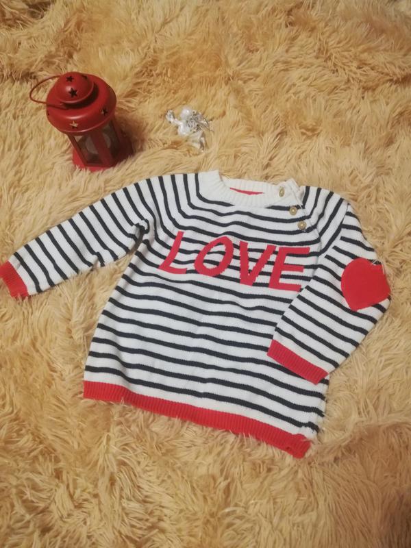Состояние идеальное. Свитерок из 100% хлопка, приятный к телу, не кашлатится. Носили мало - быстро переросла. По бирке 9-12м, но большемерит. Дочке рукав стал коротковат аж в 2,5 года. Замеры по запросу сброшу. Заходите и смотрите другие вещи, есть много других вещей до 2.5 лет. При покупке нескольких вещей скидка, ну и сэкономите на доставке😉