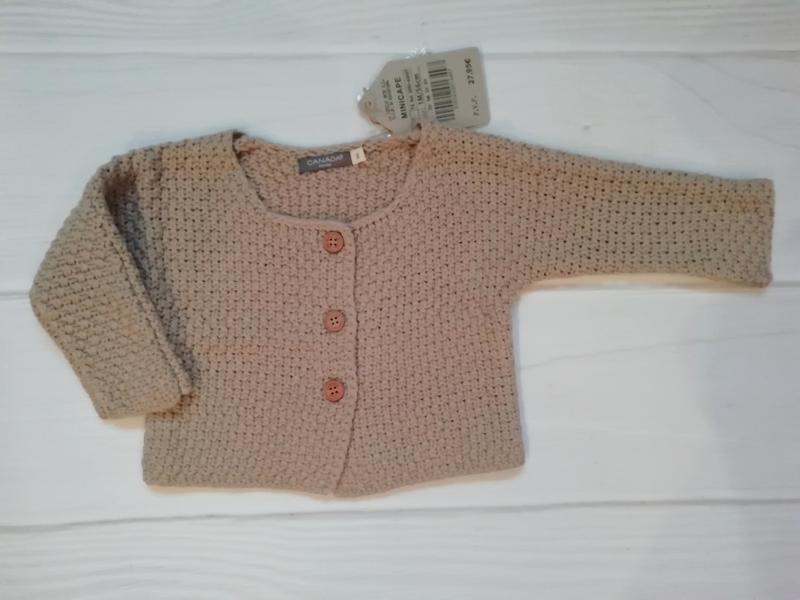Стильная вязанная кофточка на малышку. Производитель: Canada House (Испания). Размер 1М/56см. Замеры: длина 23см, ПОГ 24см, длина рукава 23см.
