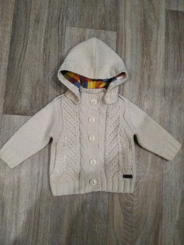 Очень классная кофточка. Состояние идеальное. По бирке на 6м. , но мы носили в годик. Если нужны замеры,пишите скину.