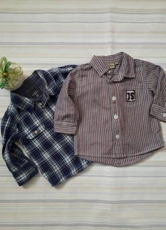 Классные рубашки на малыша. За две 50грн. Синяя в клетку на 6-9 месяцев, будет дольше. Длина - 31 см Ширина - 28 см рукав 24 см + 5 см плечо. Рубашка в полоску на 6-9 месяцев, будет дольше. Длина - 32 см Ширина - 28 см Рукав - 24 см + плечо 5 см