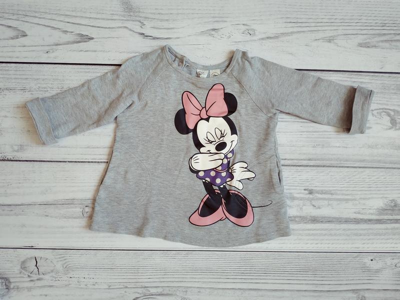 Кофта, туника Минни Маус. H&M, 12-18 мес, р. 86. Носилы к росту 116 см; никак не могли расстаться))) Качество шикарное. Есть маленькое пятнышко на рукаве, но она прячется под манжетиком, поэтому не заметно для окружающих. На плече застежки-кнопки для удобства одевания. Есть кармашки. Замеры: длина 38,5 см, пог 33 см, пот 34 см, пос 40 см, рукав (3/4) 32-34 см.