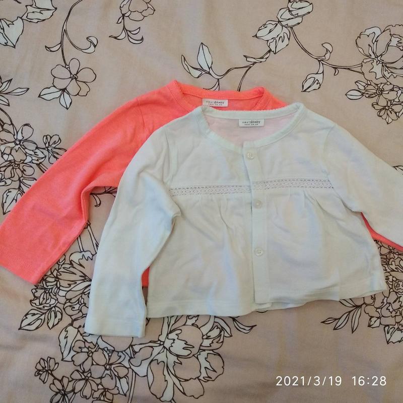 Тоненькие кофточки на лето, набор 2 шт. размер 6-9 мес., но будет дольше. На все вопросы отвечу, что интересует спрашивайте. Отправка только НП, отправляю по предоплате или полной оплате.