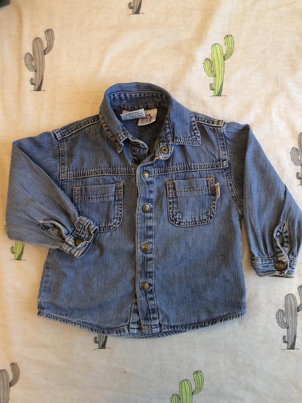 Очень стильная джинсовая рубашка Можно носить как второй слой{ как пиджак} Размер 80-86 Отправляю любой почтой