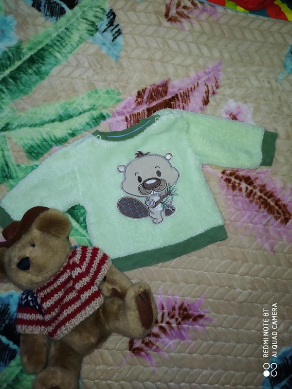 Мягкая, очень тёплая, пушистая кофточка для вашего малыша в отличном состоянии с прикольным бобром💚💚💚