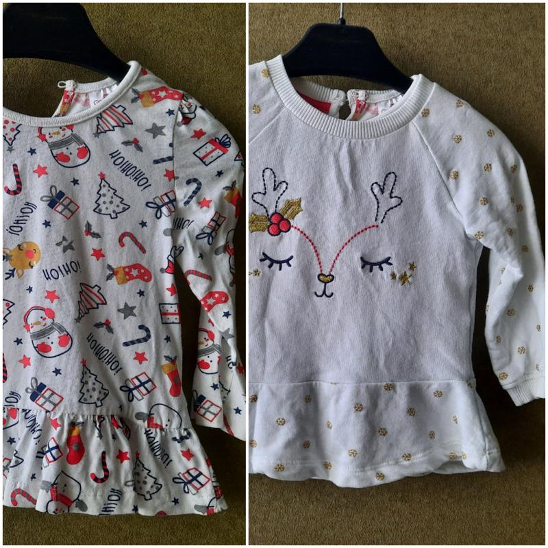 Очень хорошего качества туника/кофта на рост 74 см. Измерения белой с вышивкой оленя: длина от уголка плеча 36 см рукав от горла с резинками 31 см ширина (пог) 27 см Без дефектов! Идеальное состояние. 100% хлопок, цена за один. Белая с оленем более плотная,еет фото ткани.