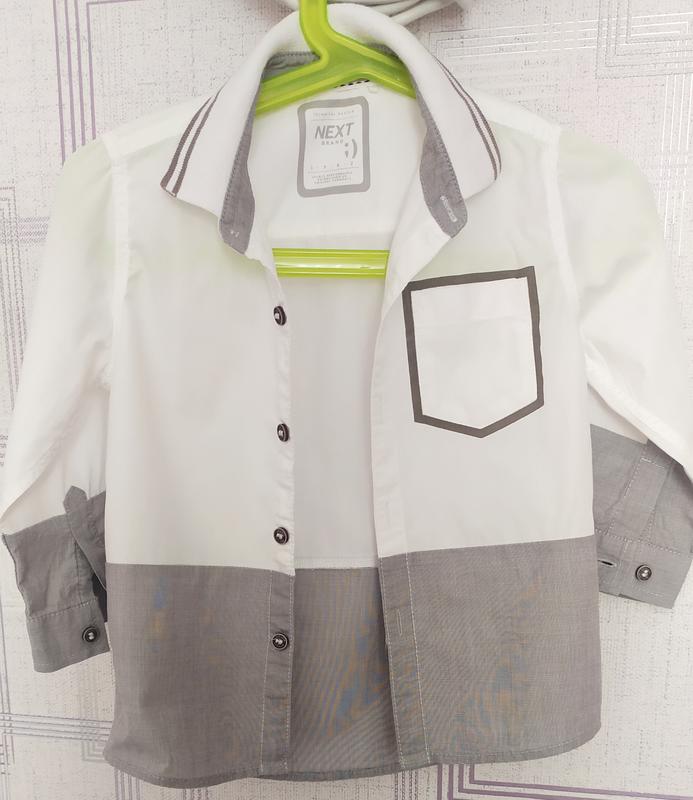 Чудова нарядна рубашечка хлопчику на вік 1.5 до 2+ років. Котон. Трикотажний комірець, що тримає форму. Дуже гарна!