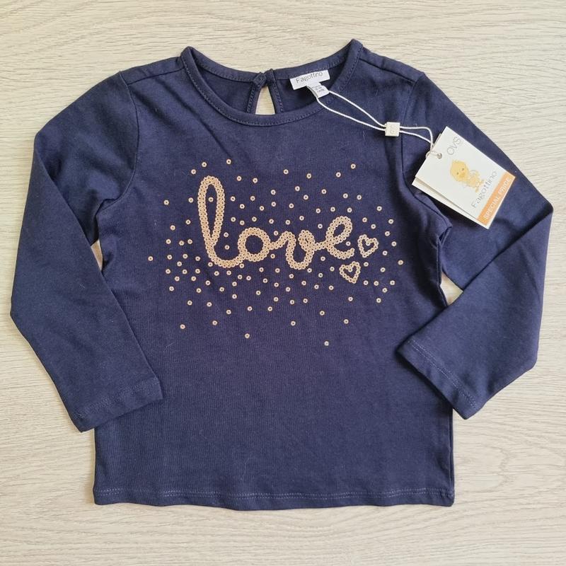 375689-86 Стильный реглан для девочки из качественного трикотажа, с милым оформлением. Цвет: Синий. Состав: 100% хлопок. Рост 86 (18-24 мес.) длина 37 см, плечи 23 см, ПОГруди 27,5 см, длина рукава от плеча 31 см.