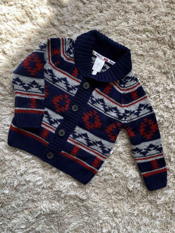 Тёплая кофта с воротником на пуговицах. Состояние новой вещи. Отдели один раз под Новый год. 9-12 мес, но реально будет дольше.
