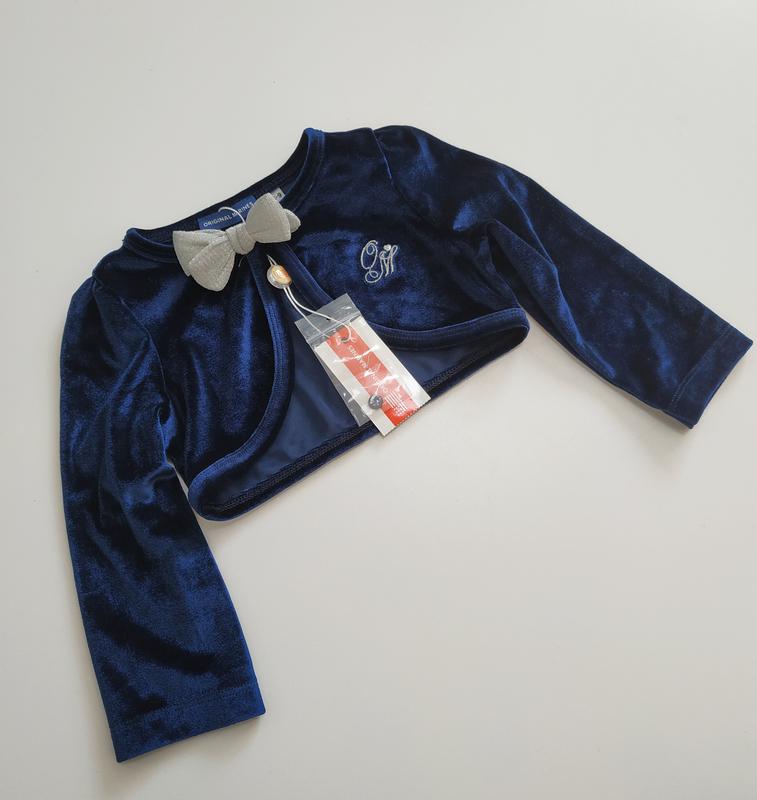 Красивое болеро Original Marines Италия Застёгивается на пуговку Размер на этикетке 68/74, 6-9 месяца Замеры: Длина 19 Плечи 20,5 Рукав 29 Материал 90% полиэстер 10% эластан