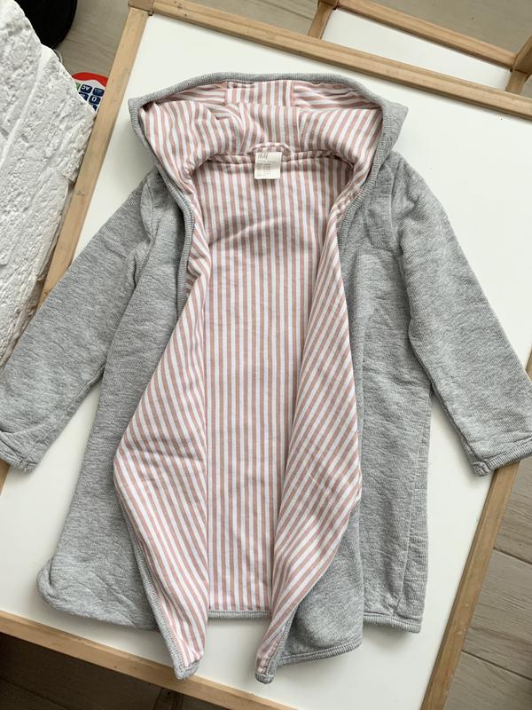 Дуже крутий стильний кардиган, повністю 100% бавовна, теплий, на запах на гудзиках. Большемерит, по бірці 6-12мес, за фактом хв до 1,5 року підійде, орієнтуйтеся по замірах. Довжина по спинці 45см Рукав 32см ПОГ 32см. В ідеальному стані, без дефектів, без катишек.