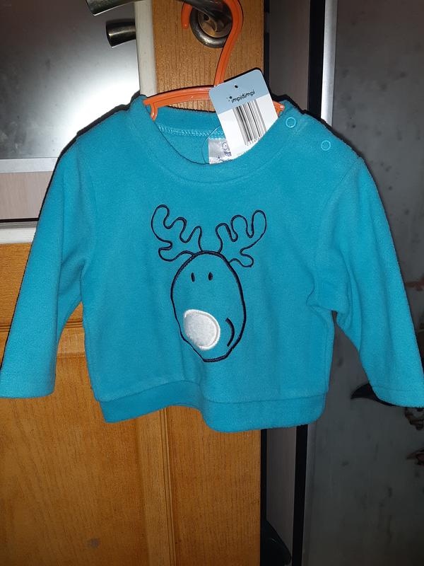 Яркая флисовая кофточка на рост 62-68см. Длинна изделия 31см, плечи 26см, рукав от плеча 23,5см, ширина подмышки 32см, низ 31,5см.