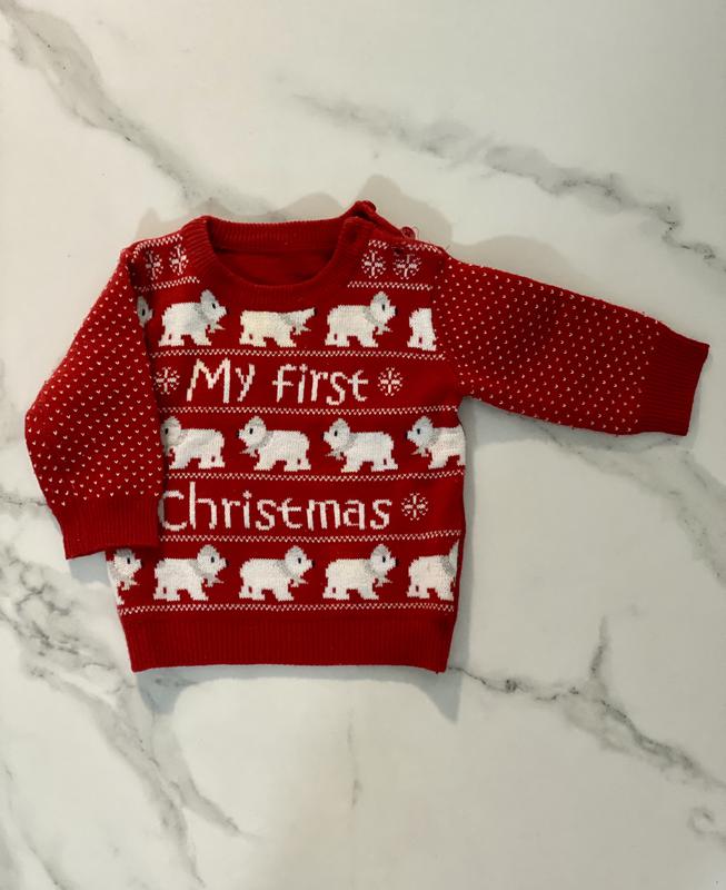 Новогодний свитерок фирмы George «Мое первое Рождество». Возраст 0-3 мес, размер 56-62 см.