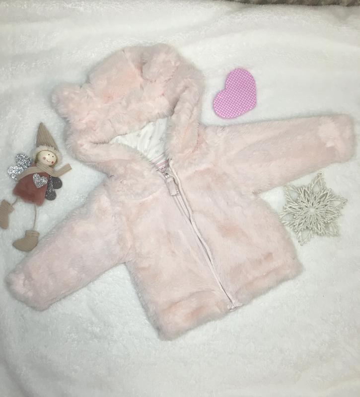 Кофта зі штучного хутра. Довжина 28 см. Півобхват 25 см. Рукав 23 см. Розмір 62-74.