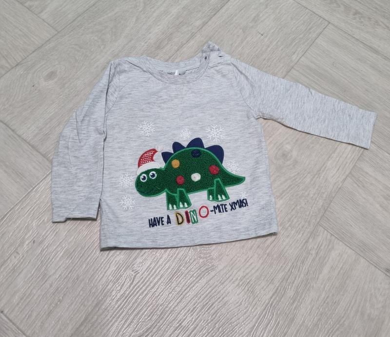 Кофточка с длинным рукавом с прикольным новогодним динозавриком, сверху застёгивается на пуговицах, состояние отличное
