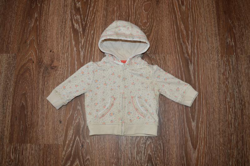 Продам тепленькую кофточку для девочки По бирке на 3-6 месяцев. Длина - 26,5 см, длина рукава - 20 см, ПОГ - 28 см. Состояние отличное. Фирма F&F. Перешлю
