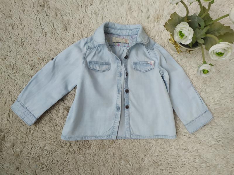 Продам джинсовую рубашку на девочку, б/у, состояние хорошее. Идёт на рост 80см. Для тех кто берет несколько вещей делаю скидку