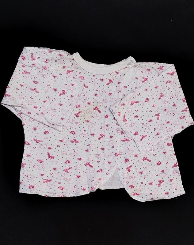 Минимальный заказ у продавца на 100 грн. Лёгкая распашонка на новорожденного в отличном состоянии. Длина изделия по спинке от плеча 24 см, полуобхват груди 19 см, длина рукава от горловины 22 см. Ткань хлопок, тянется. Модель 820