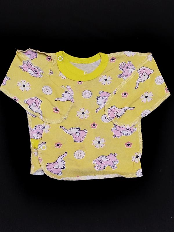 Минимальный заказ у продавца на 100 грн. Легенькая распашонка на новорожденного в отличном состоянии. Длина изделия по спинке от плеча 21 см, полуобхват груди 20 см, длина рукава от горловины 22 см. Ткань хлопок, тянется. Модель 822