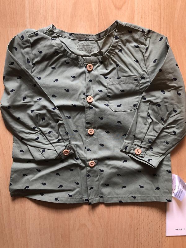 Рубашка цвет хаки с китами, рост указан 68