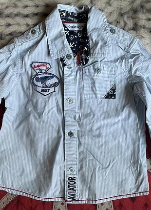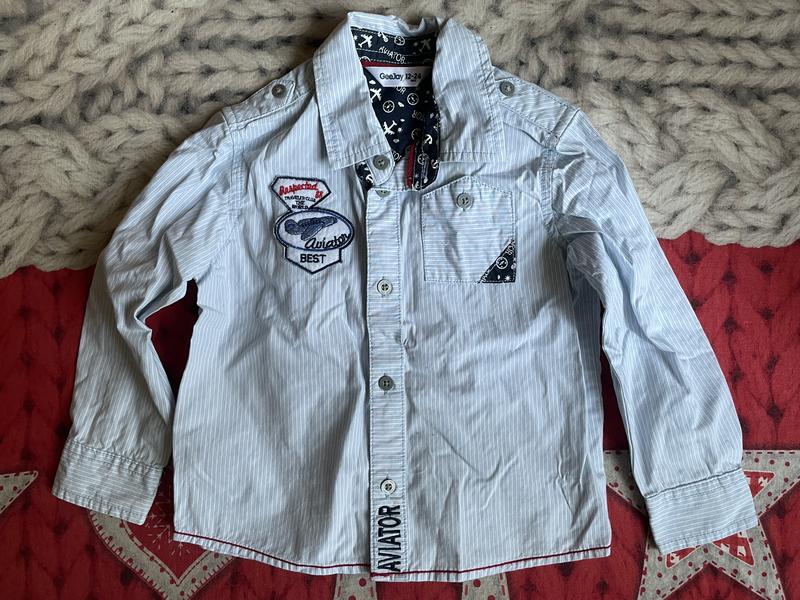 Сорочка з щільної бавовни. Нарядна, гарна. Пасує до casual стилю - джинси і т.і. Розмір: 18-24 міс., 86-92 зріст. Заміри: ПОГ - 33 см, рукав 33 см, довжина - 35 см.