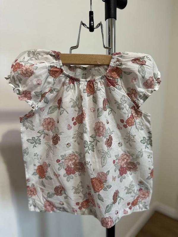 Легкая рубашка с цветочным принтом для маленькой красавицы на 1,5 рюмочки, 92 см