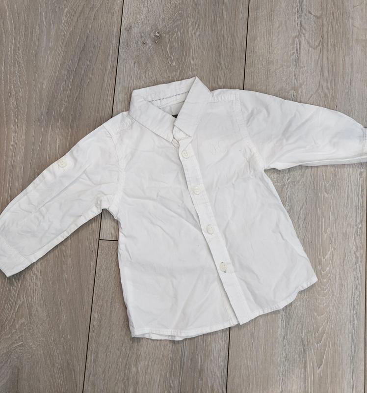 Белая рубашка/Рубашка размер 68 на спине имеет 2 желтых точки при необходимости сделать замеры