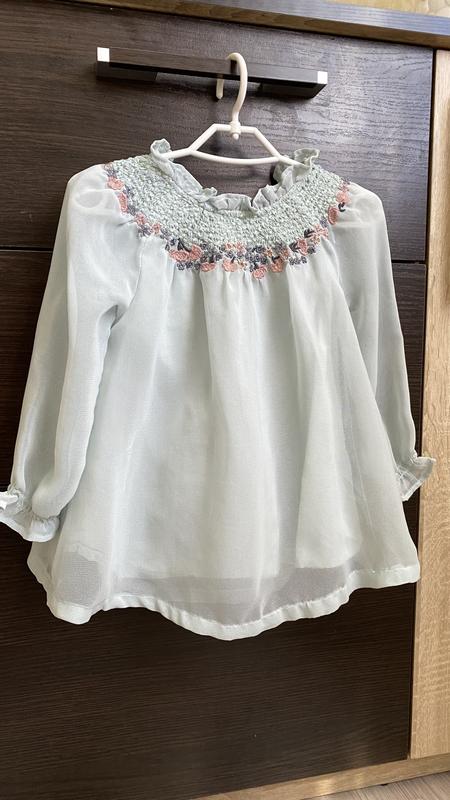 Очень красивая и нарядная блузка для девочки с вышивкой у горловины, цвет нежно голубой, размер 86, можно раньше даже с 74) Материал будто шифон с подкладкой, рукава без подклада)