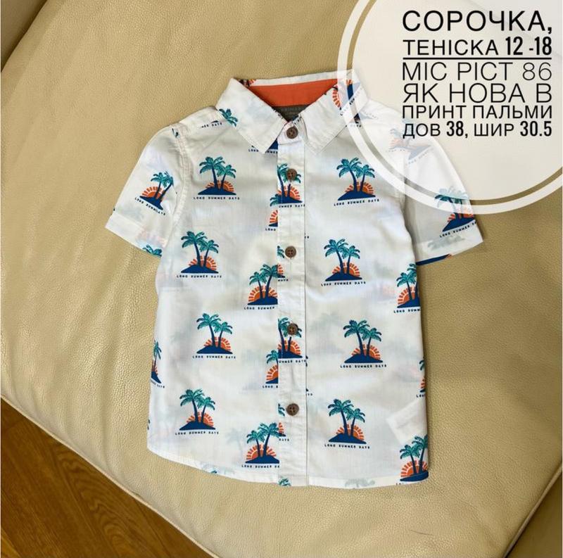 Сорочка, теніска 12 -18 міс ріст 86 як нова в принт пальми дов 38, шир 30.5 від primark