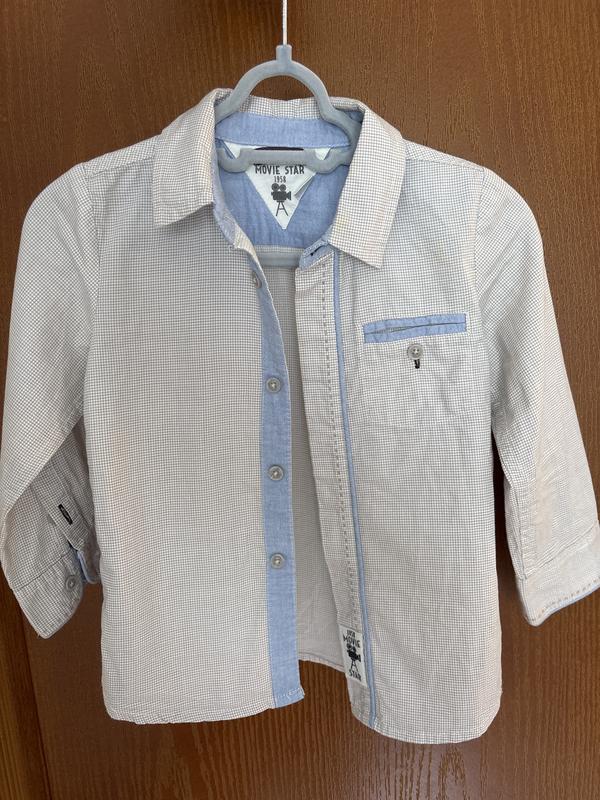 Дитяча сорочка Chicco. Для стильного малюка 💫 З довгим рукавом, вишивкою на правому рукаві, прихованими ґудзиками. На 1-1,5 рочки, зріст 86 см. Ширина сорочечки 27 см, довжина 40 см, довжина рукава 30 см