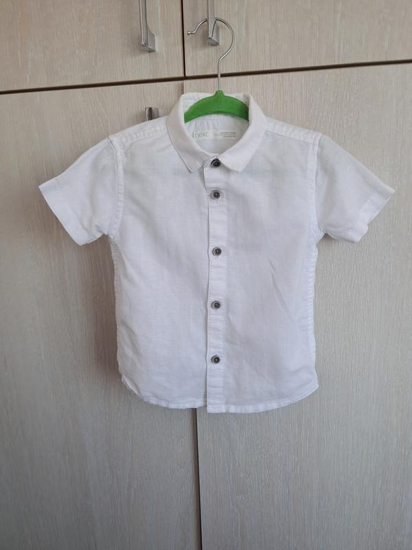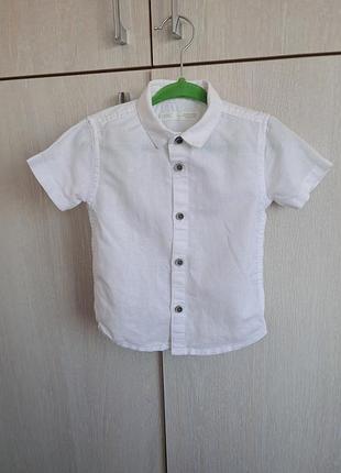 Белая рубашка для мальчика 9-12мис Состав ткани 55%лен и 45%хлопок.Длина 35см ширина 28см.