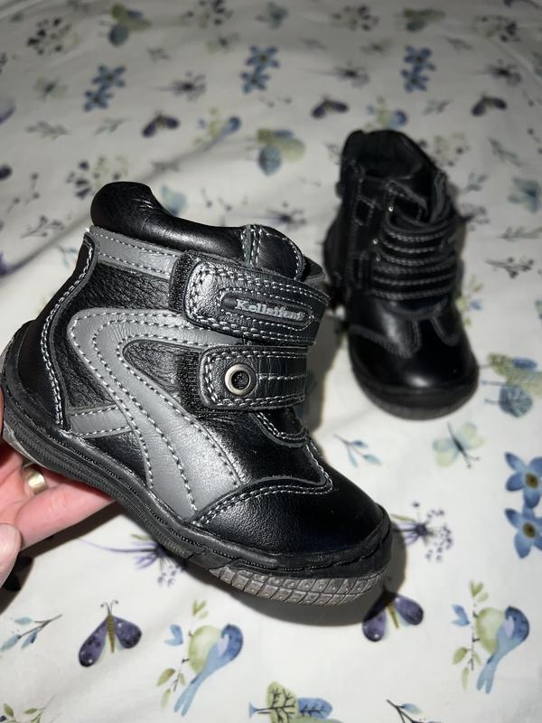 Чобітки 22 розмір з молнією та заліпками Шкіряні! Були одягнені один раз
