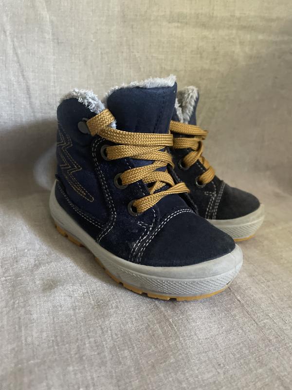 Очень крутые теплые ботинки темно-синего цвета 22 размера Материал создан таким образом, что так называемые поры между полимерными нитями достаточно велики для прохождения частиц пота, но малы – для капель дождя или снега.Особенности технологии Gore-TexМембрана имеет следующие свойства: водонепроницаемость; защита от ветра; парововодимость; прочность; легкость; экологичность.