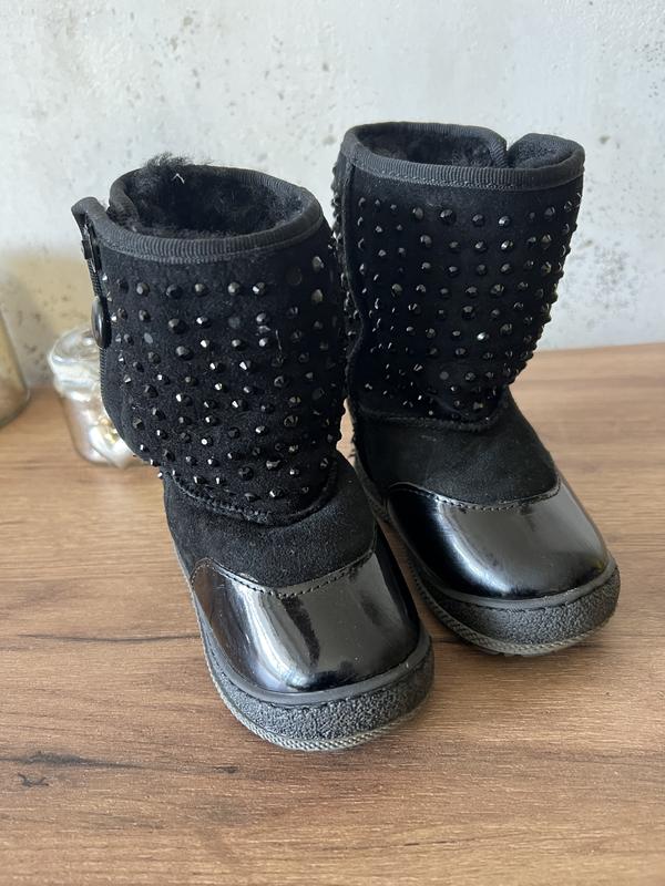 Угги з натуральної овчини, дуже теплі. Стан ідеальний. Є невеликий дефект, на одному чобітку відпав верх кнопки (послідні фото).