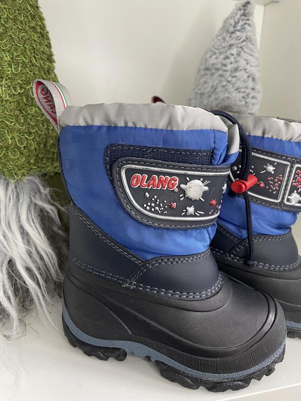 Якісні, дуже теплі зимові чоботи від італійської фірми Olang, чоботи повністю наповнені дуже приємним теплим хутром. Зимовий теплий сніговик, застібка на липучці для легшого надягання та підтягування до ніжки, низ гумовий. Стан - нові Розмір - 19,20