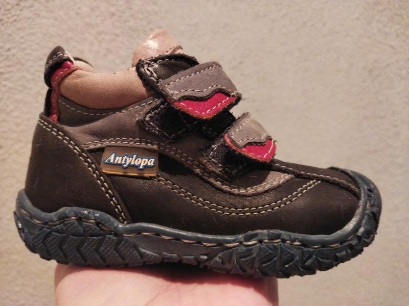 Детские фирменные ботинки Antylopa, из натуральной кожи. Ортопедическая, кожаная стелька. Удобные застежки с липучкой. Прошитая подошва. Размер: 20. На ножку до 13 см. Сезон: весна / осень. Обували несколько раз. В отличном состоянии. 1. Уведомления мне, для подтверждения наличия. 2. Перешлю после оплаты: Укр/ Новой почтой. 3. Смотрите информацию "Про меня".