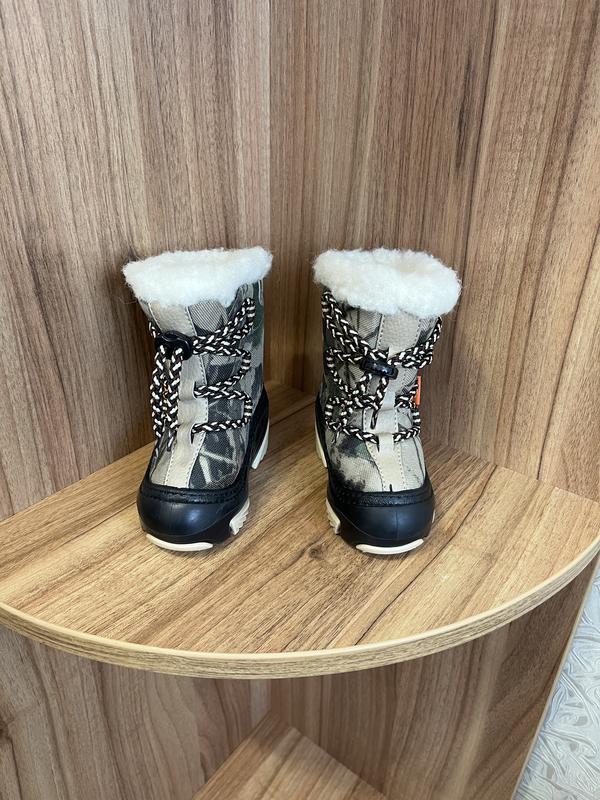 Чоботи зимові Demar стан нових, оскільки було декілька пар взуття та й ці так співпадало носили, коли спав у візку, то ж на вулиці жодного разу в них не ходив. Розмір 20/21 повномірні по устілці 12-13,5 см.