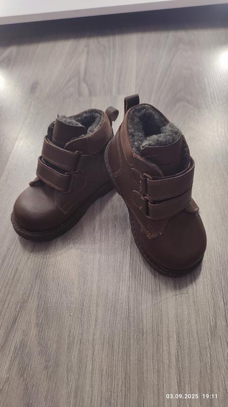 Ботинки для хлопчика в дуже хорошому стані, але трішки кода здерлася на язичку фото додаю але на вигляд вони нові розмір 23