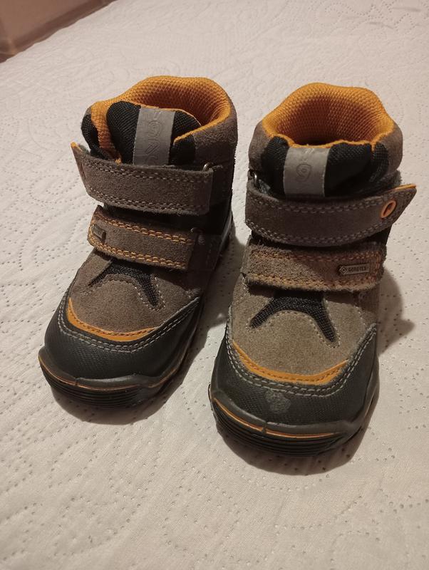 Стелька 13,5 см. С системой Gore tex. Я надевала ребенку до -5, ноmericaй, что и на более низкую температуру они тоже будут. Просто у нас были еще валенки, поэтому чередовали. Липучки держат хорошо. На одном сапожку сбит немного носок.