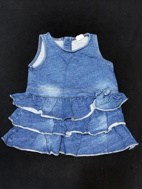 Минимальный заказ у продавца на 100 грн. Очень красивое платье джинсового цвета ТМ H&M на ребенка 3-6 месяцев в отличном состоянии. Длина изделия по спинке от плеча 35 см, полуобхват груди 24 см. Ткань хлопок, тянется. Модель 846