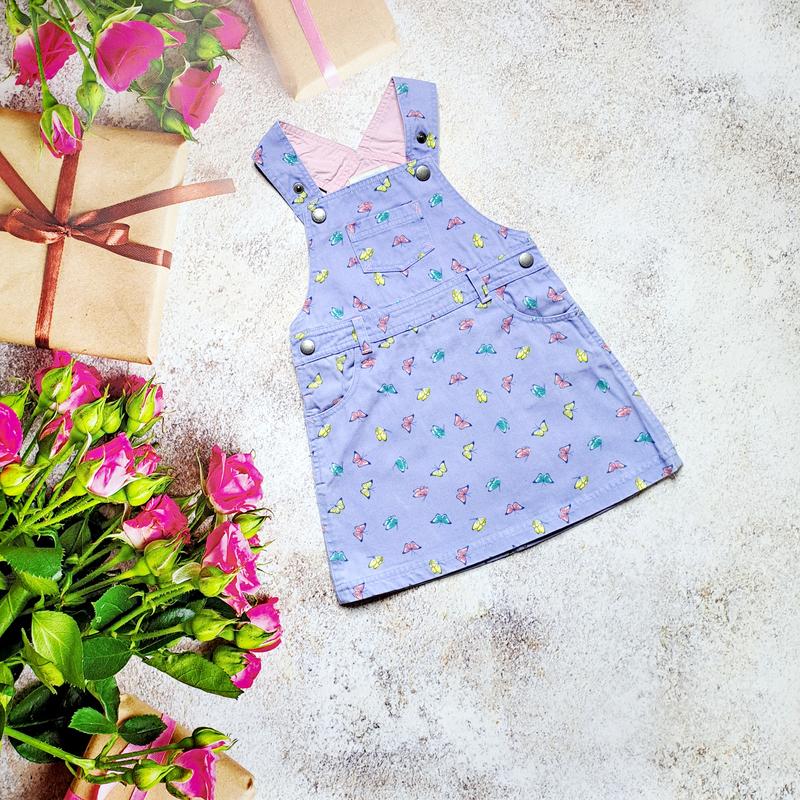 Джинсовый сарафан в бабочки на 1,5-2 года, очень красивый, с карманами В идеале Шир 27 Длж 50