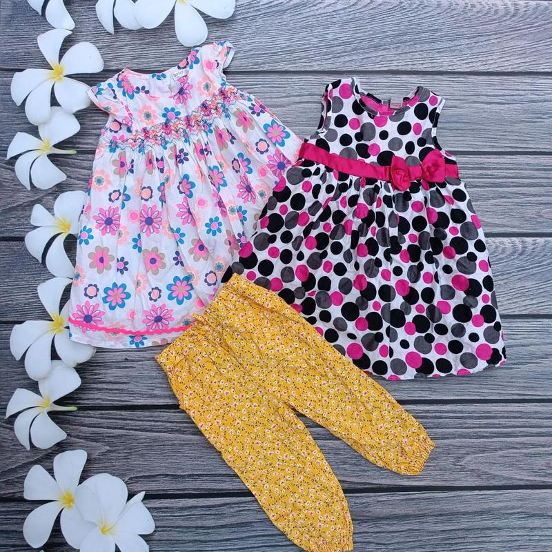 Набор на девочку 9-12 мес, рост 74-80 см, сарафан, летние брюки, платье